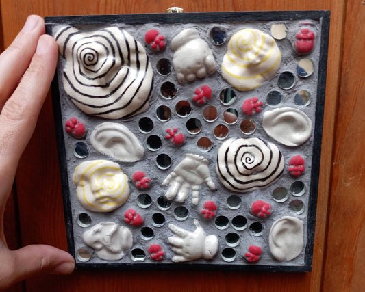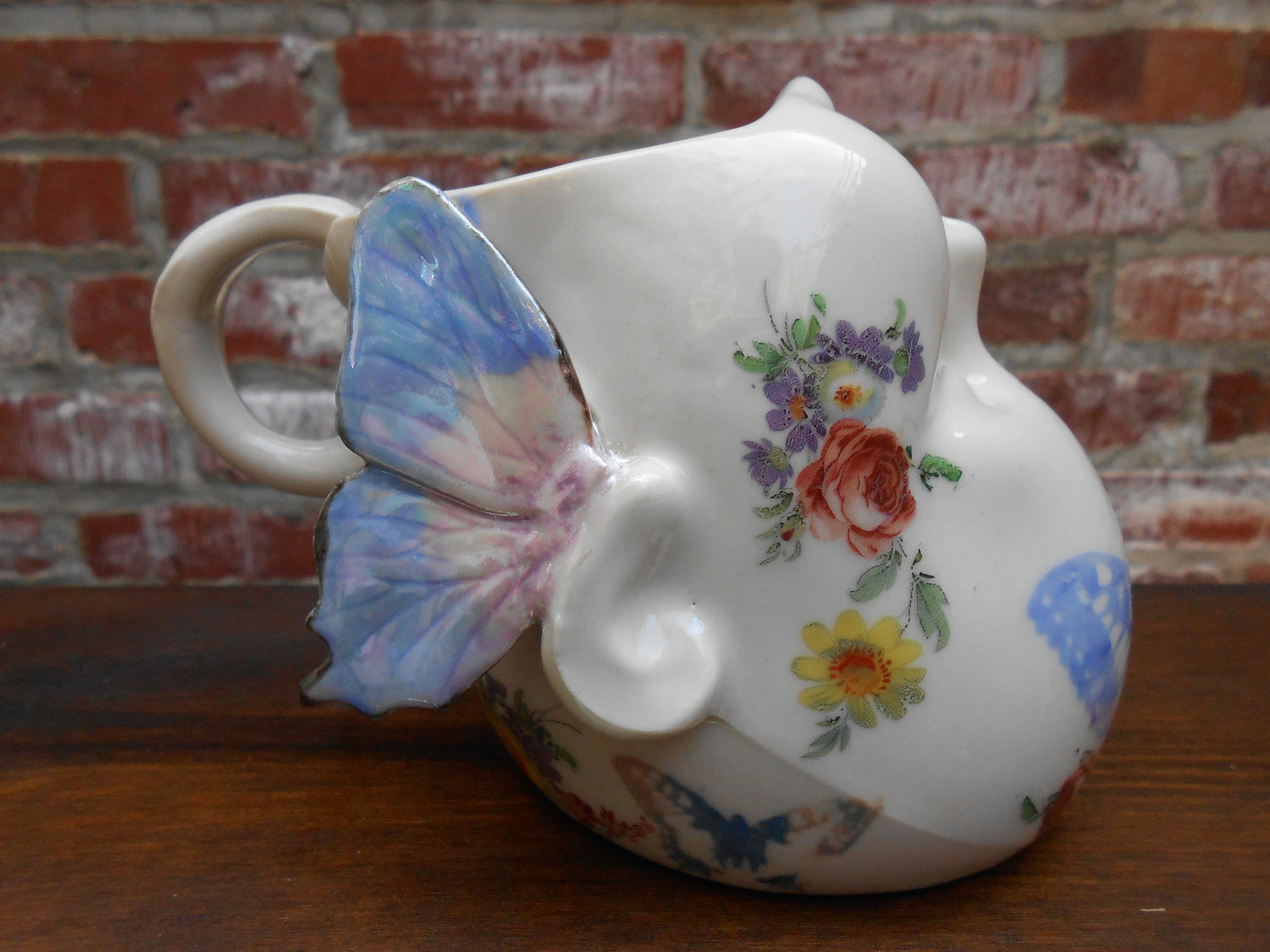 Antea loves using vintage plaster molds to slip cast (though currently press molding) and make composite works of art and utilitarian wares. She mainly works with cast doll parts and finds them cute, not creepy! She was an avid Cabbage Patch Doll lover as a child and they bring her joy. A second firing of vintage overglaze decals and lusters adds that last bit of flair to her beebs.